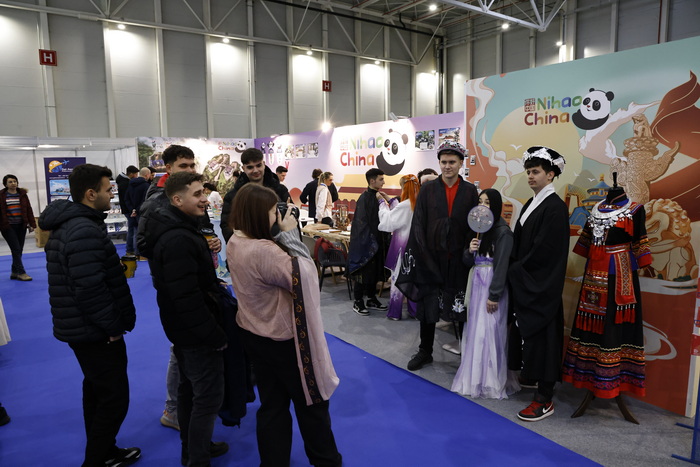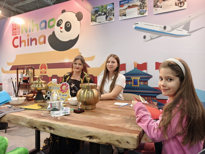 “你好!中国”展位展示了贵州特色旅游资源,并展出了“云上贵州·最美云游季”VR展,吸引访客纷纷驻足体验。中国入境游相关便利化政策和措施也颇受关注,支付、上网便利化操作指南供不应求。大量访客积极参与书法、中国常识问答、汉服拍照打卡等文化体验项目,成为此次展览会中互动体验最强的展位。名创优品罗马尼亚分公司精心布置了MINISO GO系列旅游产品专区,受到民众的青睐。“你好!中国”熊猫人偶成为整个会场最有人气的“明星”,所到之处都能引发一阵拍照热潮。