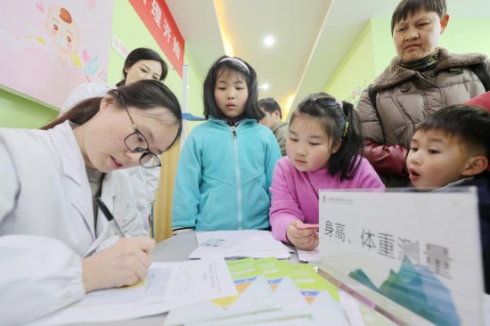 3月15日,在浙江省湖州市德清县洛舍镇卫生院,医护人员在登记儿童诊疗信息。 新华社发(谢尚国摄)