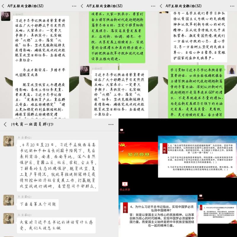为深入学习“习近平总书记来陕考察重要讲话精神”,积极响应上级团组织和学院党委指示,做到团员全覆盖。5月27日,团委组织各二级学院团总支在全院青年学生中开展“学习习近平总书记来陕重要讲话精神”主题团日活动。本次活动采用线上线下相结合的方式进行,全院165个团支部组织团员青年通过班会、QQ群、微信群、腾讯会议等平台,开展了内容丰富、形式多样的主题团日活动。