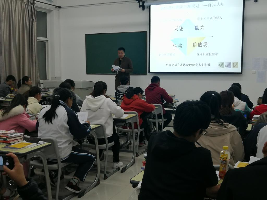 经济与金融学院团总支针对在校18级、19级学生进行了多场《生涯规划与自我认知》讲座。讲座由经济与金融学院学生工作科副科长许斌老师主讲,以探知自我、认识自我为主线,从兴趣、性格、价值观、能力四个方面展开自我探索。同学们纷纷表示受益匪浅,讲座收效甚佳。