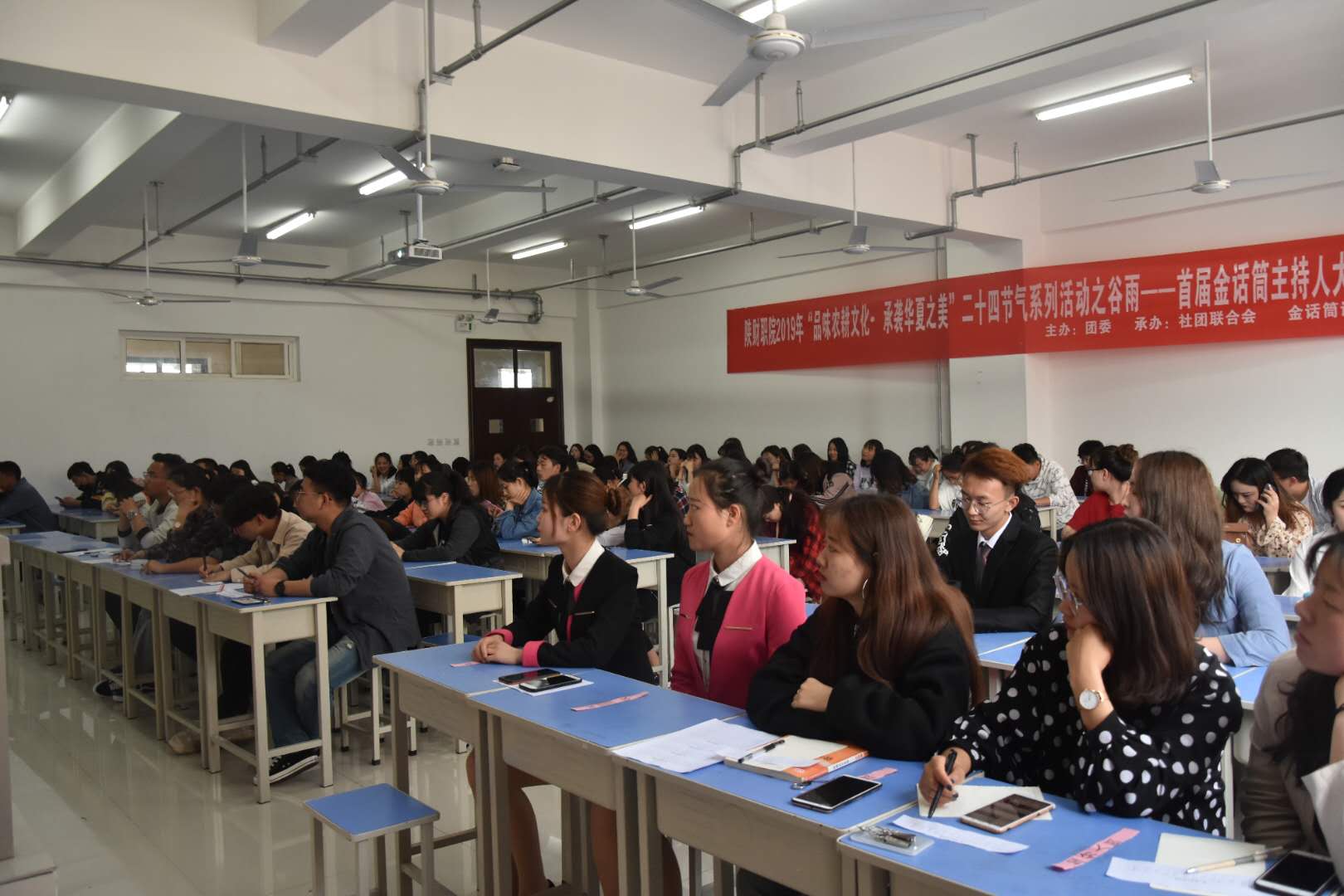 4月19日下午4:10,团委在综合楼627合班教室举办了“品味农耕文化▪承袭华夏之美”二十四节气系列活动之谷雨首届金话筒主持人大赛总决赛,此次活动由院团委主办,金话筒语言艺术社承办,社团联合会、校园之声广播站、大学生艺术团协办。现场200余人参与此次活动。