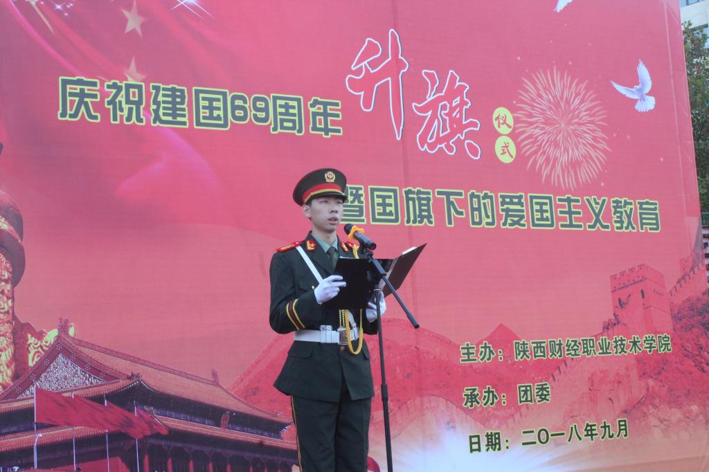 曾贵荣宣读了《陕西财经职业技术学院关于2018—2019学年“国旗下的爱国主义教育”主题系列活动安排》。明确了全年各二级学院的“国旗下的爱国主义教育”活动内容,并提出四点工作要求:一是要高度重视,做好组织动员;二是加强宣传,营造良好氛围;三是严明纪律,凸显学院风采;四是立足实际,确保活动实效。