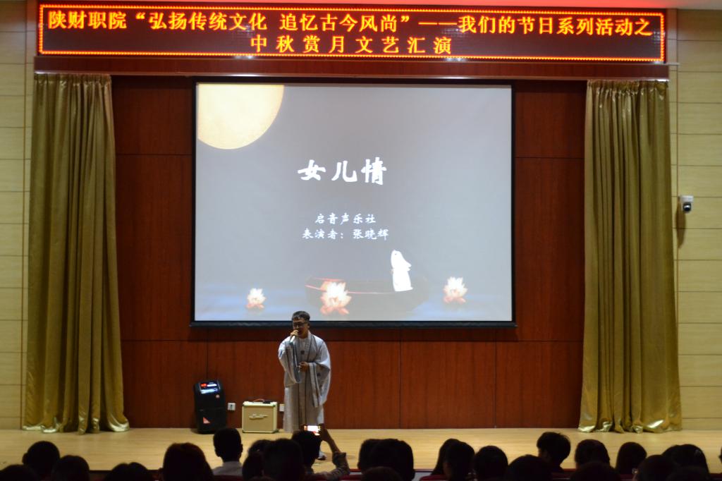 9月20日下午4:00,团委在学术报告厅举办了“弘扬传统文化·追忆古今风尚”——我们的节日系列活动之中秋赏月文艺汇演,此次活动由我院社团联合会承办,各学生社团共同协办。参与本次活动的学生代表共计400余人。