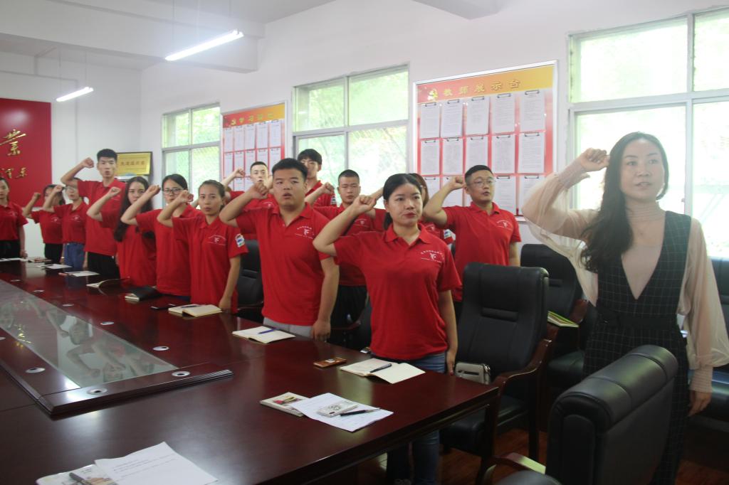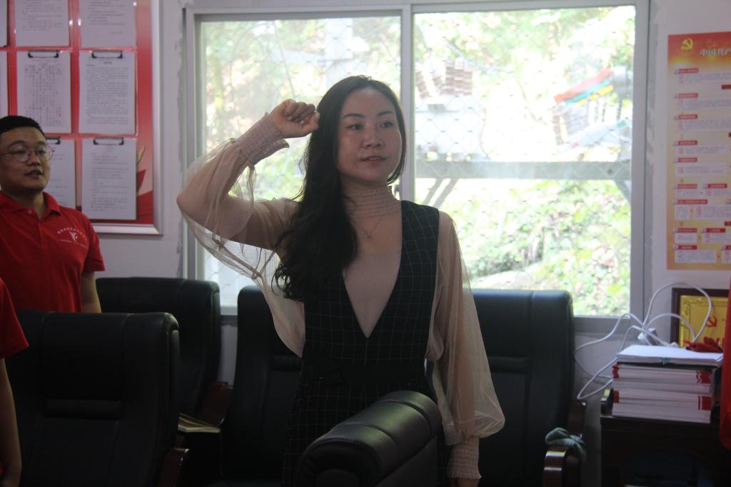 团委书记窦曼娟带领全体党员宣誓 |