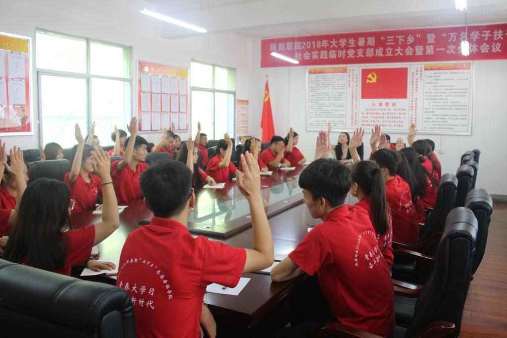7月13日上午8:30,我院志愿服务团队全体党员在柞水县城区第二小学党员活动室举办了2018年大学生暑期“三下乡”“万名学子扶千村”社会实践临时党支部成立大会暨第一次全体会议。