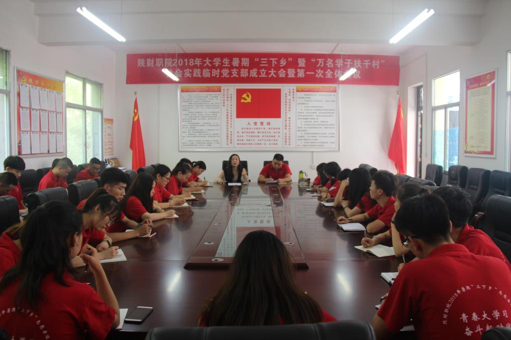 首先,经济与金融管理系团总支书记、“助力柞水休闲游”互联网+旅游服务队带队教师袁永彦宣读《陕西财经职业技术学院关于成立2018年大学生暑期“三下乡”暨“万名学子扶千村”社会实践临时党支部的通知》,明确了临时党支部的职责与任务。