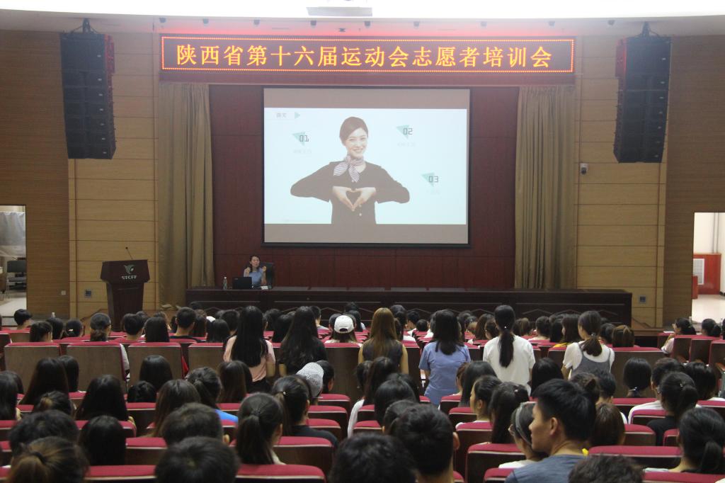 2018年7月7日上午9:00,陕西省第十六届运动会志愿者培训会在我院学术报告厅成功举办。此次培训会邀请到十六运培训团队7名专业老师为我院学子详细讲解关于担任运动会志愿者相关事项,我院530名志愿者参加此次培训。