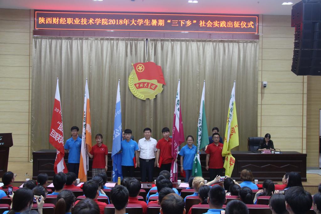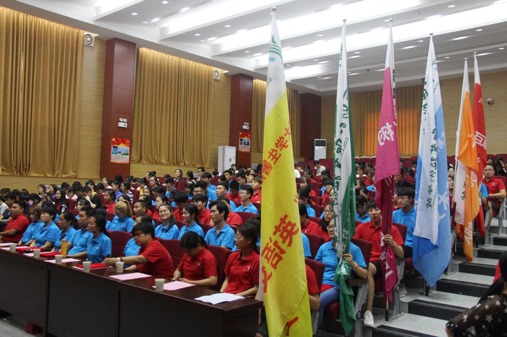 2018年7月5日下午4:30,我院在学术报告厅举办了2018年大学生暑期“三下乡”社会实践活动出征仪式,学院党委副书记兼纪委书记刘文雅、工会主席王爱军、宣传处副处长朱永斌、党政办副主任严丽丽出席了活动,参加活动的还有各志愿服务队带队(指导)教师、全体志愿者、以及师生代表共计400余人。