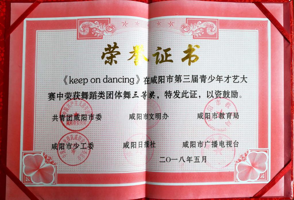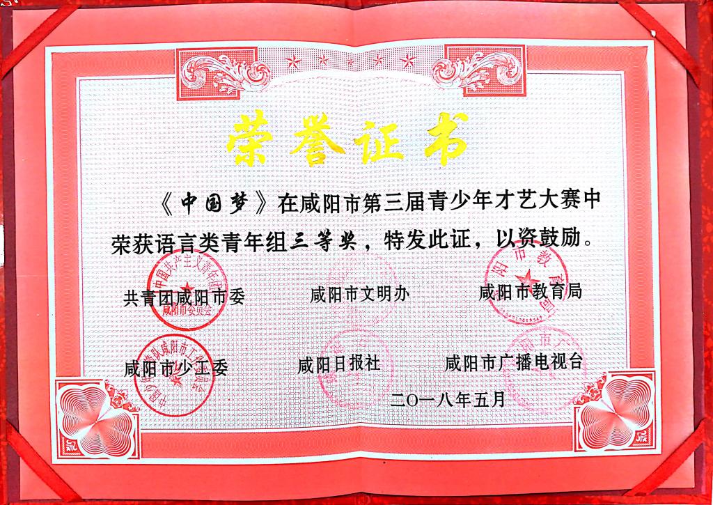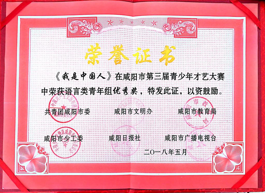 近日,由共青团咸阳市委、咸阳市文明办、咸阳市教育局等部门共同举办的咸阳市第三届青少年才艺大赛在咸阳市青少年宫成功举办,我院13名学生在语言类、舞蹈类、声乐类比赛中经过激烈的角逐,取得优异成绩,成为咸阳市各高校中获奖最多的院校。