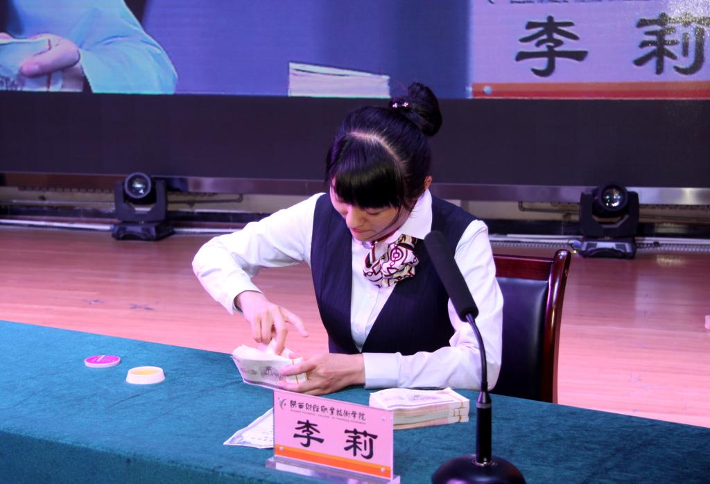 接着,现场师生神情专注地观看了李莉和马宇的工匠精神专题宣传片。随后,点钞专业能手李莉上台与我院5名学生代表进行了点钞竞技表演。李莉精湛的点钞赢得现场一阵阵掌声和喝彩。报告会主持人还饶有兴趣地采访了李莉,并与学生进行了交流互动,数十名财会专业粉丝在第一时间与李莉建立了联系方式。李莉表示,会后将对参加中省大赛的选手做专业指点。