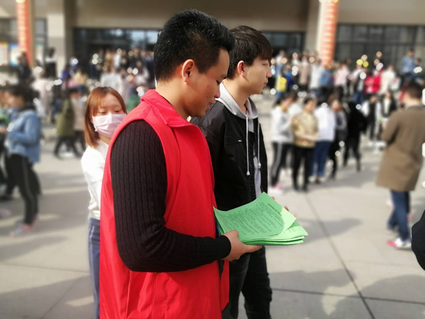 志愿者为同学们发放“世界结核日”宣传单