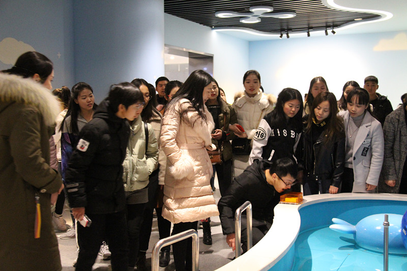接着来到青少年宫,讲解员带着大家依次参观了形体教室、音乐教室、跆拳道馆等。沿着场馆的小路来到泰迪熊馆,老师同学们站在模拟体验屏幕前与动物互动,用泰迪熊布置的场馆烘托出现场气氛温馨且充满趣味。
