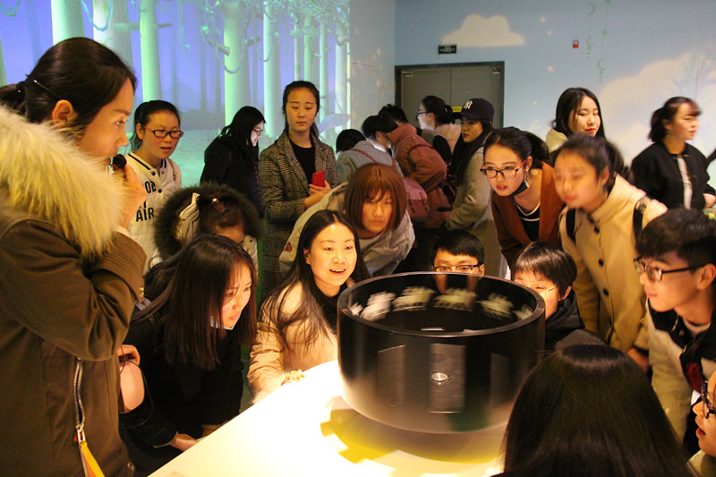 最后,在讲解员的带领下参观了科技馆。科技馆里每一件设备都蕴含着自然科学原理,大家迫不及待地尝试着动手操作体验科学的奇妙。在科技馆里,有时空隧道、真实模拟飞机驾驶舱、能跳舞的机器人、可同时与多人下围棋的机器人等。参观完科技馆,同学们都深深地为祖国科技发展的迅速而深感自豪。