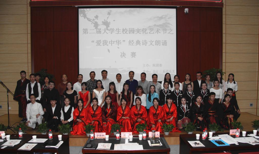 由院团委主办、会计三系团总支承办的第二届“我的中国梦”大学生校园文化艺术节之“爱我中华”经典诗文朗诵大赛于5月10日下午16:30在学术报告厅举行。副院长刘晓玉、于新和、张秦龙出席了大赛,会计三系主任邓迪夫、专职副书记张晓战,团委书记窦曼娟以及400余名学生代表观看了比赛。本次大赛评委由图书馆副馆长崔斗、教网中心副主任许辽海、党政办公室副主任宋波、基础部语文艺术教研室主任田会云、教网中心樊婷婷五位老师担任。