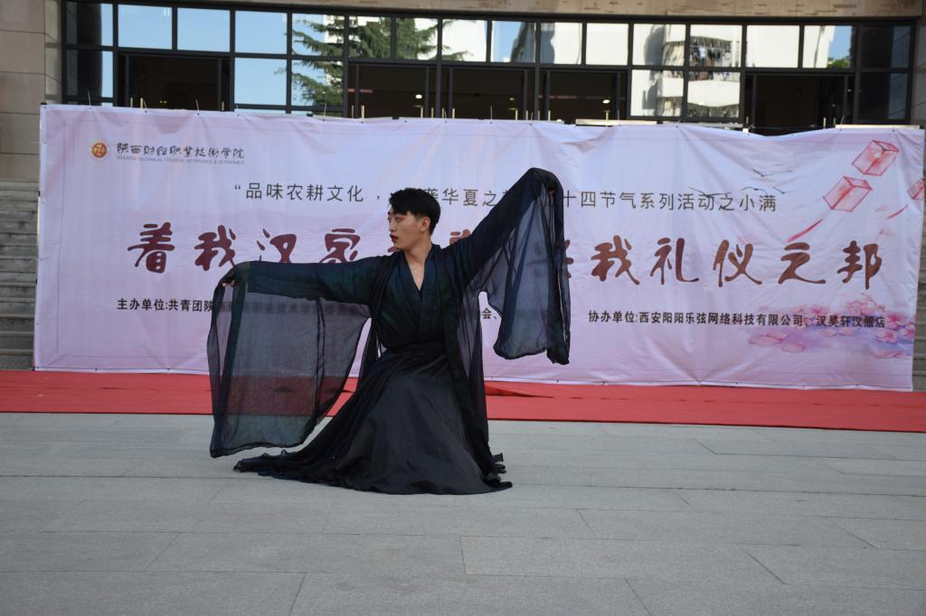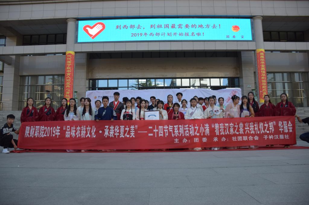 5月21日下午4:30,团委在学院综合楼前组织举办了2019年“品味农耕文化•承袭华夏之美”二十四节气系列活动之小满华服会。此次活动以“着我汉家之裳,兴我礼仪之邦”为主题。参加活动的有咸阳师范学院“渭水华夏”汉文化社团、西安航空职业技术学院“柏舟”汉服社10余名学生。同时活动受到社会各界的广泛关注,陕西古代音乐文化研究院全程参与报道了此次活动。
