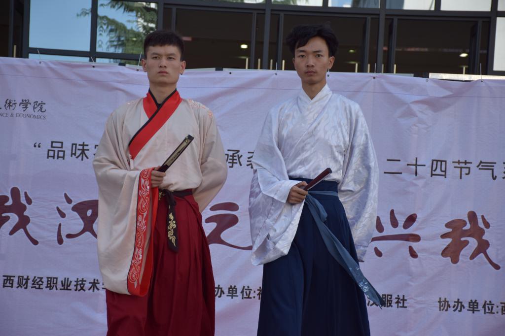 活动共分为汉服走秀、乐器合奏、歌舞表演三部分,汉服社的同学们分别展示了齐腰襦裙、晋襦、宋裤、立领长衫、坦领、直裾、齐胸汉元素、杂裾等多种形制的汉代服饰,令现场观众赏心悦目。杨静、刘颖、李鹏娇、王倩等同学演唱了歌曲《红昭愿》、《盗将行》,以流行歌曲的形式表达传统文化更加贴合青年学生的喜好。马祥泷等6名学生表演舞蹈《舞剑》、《双面燕洵》,优美的舞姿、跌宕起伏的音乐让人陶醉其中。随后在工作人员的组织下,进行了汉服知识有奖问答活动,极大地调动了同学们参与活动的积极性。