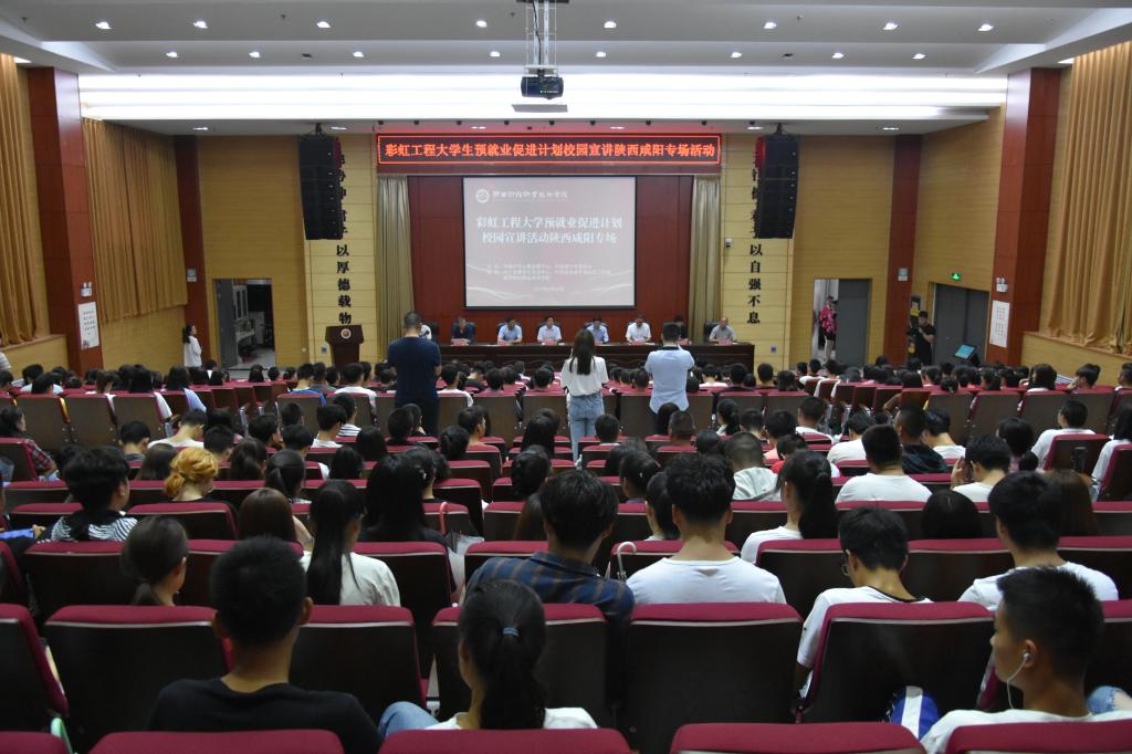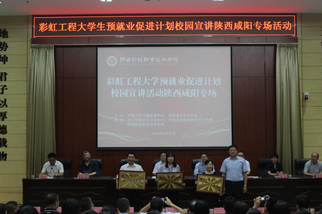 为进一步落实团中央“千校万岗”大中专学生就业精准帮扶行动,帮助建档立卡贫困家庭毕业生增强就业意识,6月20日下午,我院在学术报告厅举办了彩虹工程大学生预就业促进计划校园宣讲陕西咸阳专场活动。出席此次活动的领导有共青团中央中国少年儿童发展服务中心副主任、中国青少年宫协会副会长吴扬杰,中国少年儿童发展服务中心文化交流中心负责人、中国青少年宫协会青年和社区工作部部长郭益民,共青团陕西省委副巡视员白敏,共青团陕西省委青年发展部部长李宗际,共青团咸阳市委书记刘杰;我院党委书记张志华,院长程书强出席了活动。参加本次活动的还有陕西省16所高校负责共青团及就业工作的各位领导和68家招聘企业的代表,以及新华网、中国青年网、咸阳电视台、咸阳日报等媒体记者。