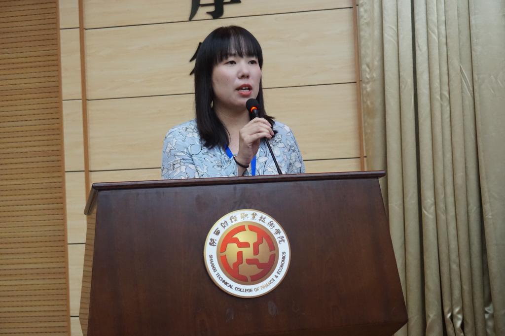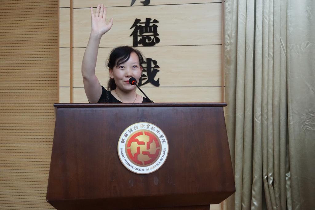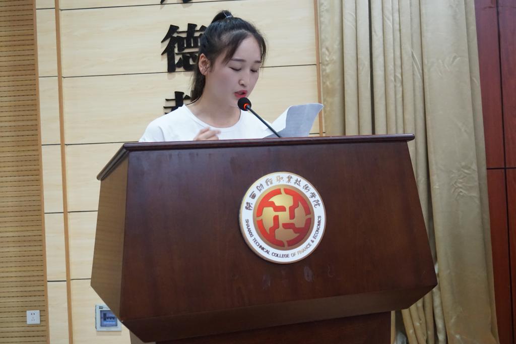 “千校万岗” 大学生就业精准帮扶行动就业学生代表王彩霞发言,分享了自己作为一名建档立卡的贫困学生在学院帮助下顺利完成学业,并找到了满意的工作,表达了对国家政策及学院老师由衷的感谢。