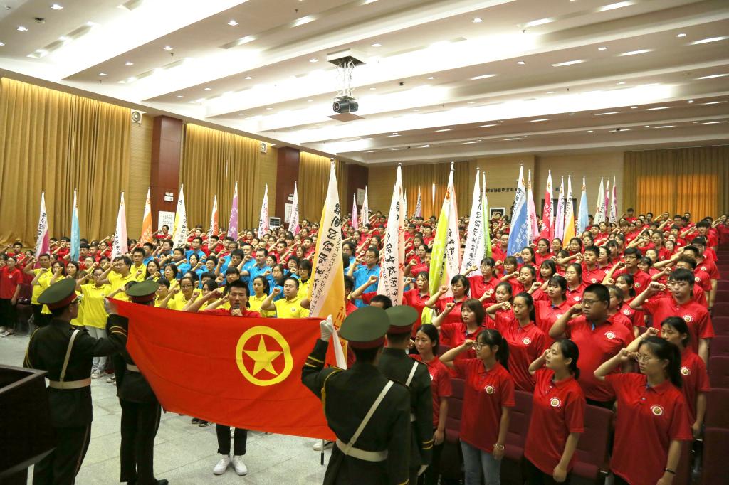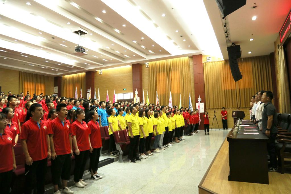 6月28日下午2:30,我院在学术报告厅举办了2019年大学生暑期“三下乡”暨“万名学子扶千村”社会实践出征仪式暨志愿者培训会。学院党委书记张志华,副院长刘晓玉,副院长于新和,学工部部长、学生处处长雷旭,党政办主任宋波,管理学院党总支书记曾贵荣,经济与金融学院党总支书记曹耀辉,学生处副处长南校区负责人贺适出席了仪式。各志愿服务队49名指导教师、333名志愿者以及学生代表共计400余人参加仪式。出征仪式由团委书记窦曼娟主持。