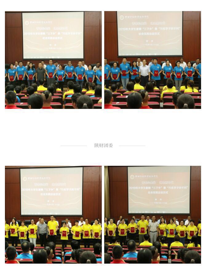 我院2019年大学生暑期“三下乡”暨“万名学子扶千村”社会实践以“青春心向党·建功新时代”为主题。计划在七月中下旬在我院扶贫点柞水开展针对性帮扶活动。力求发挥青年优势,在培养和锻炼学生的基础上为我院扶贫工作添砖加瓦,同时为中华人民共和国建国70周年献礼。