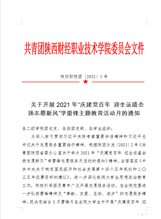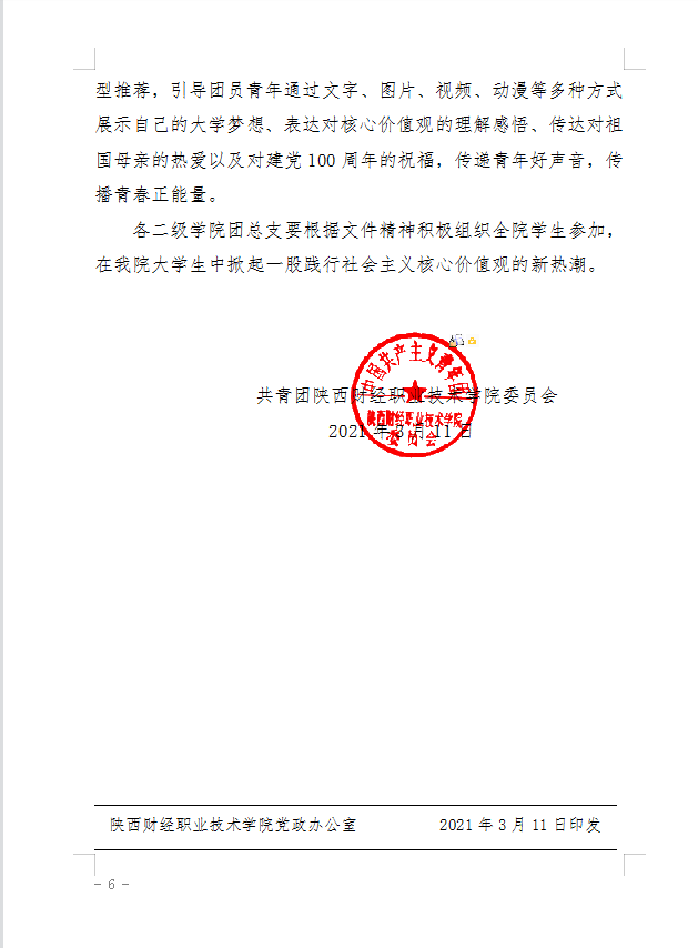上一篇:陕财职院团〔2021〕5号 关于举办陕西财经职业技术学院“学党史、强信念、跟党走”第二届团干部素质能力大赛的通知