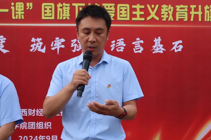经济与金融学院团委副书记张静瑜:五星红旗迎风飘扬,升旗仪式振奋人心。作为新时代的大学生,站在国旗下希望你们深刻理解国旗背后的含义,将爱国之情转化为报国之志,用实际行动践行对祖国的忠诚与担当。大学是你们成长成才的重要阶段,也是塑造人生观、价值观的关键时期,希望你们以五四精神为指引,在学习上,敢于质疑,勇于提出自己的观点和见解;在生活中,敢于尝试新事物,勇于接受挑战。珍惜宝贵校园时光,努力学习、积极实践,提升自我修养和综合素质。没有“躺平”的青春,只有奔跑的岁月。青春没有标准答案,勇于创新,不懈奋斗,就是最好的答卷,加油!