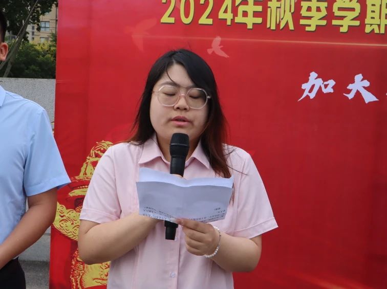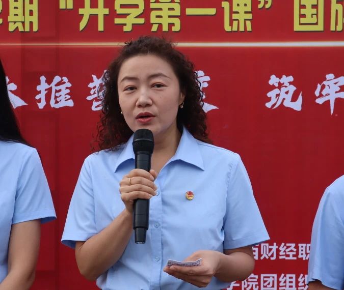 数字商务学院团委副书记张欣瑞:亲爱的同学们大家早上好,时序更替,华章入新。今天我们又一次一同站在庄严的国旗下,迎接新学期的开学第一课。新的学期,新的起点,希望同学们树立新的目标,刻苦努力、不断进取,从而取得新的成绩。希望同学们在大学时光里收获知识,收获成长,度过充实而有意义的每一天。新学期,加油!