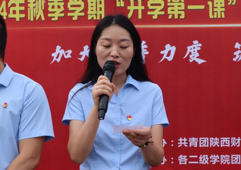 会计学院团委书记张璐:各位同学,大家早上好,我是会计学院团委书记张璐。作为新时代的青年,你们是祖国的未来、民族的希望。在这开学第一课之际,我祝愿大家邂逅志同道合的朋友,聆听师长们的悉心教诲,一同在知识的海洋里自由遨游,体验丰富多彩的学生活动,发展多样化的兴趣爱好,享受“第二课堂”的全方位滋养。在成长的道路上五育并举、全面发展!希望大家传承科学家精神、学会独立思考、收获珍贵友谊,在青春的舞台上绽放光彩!