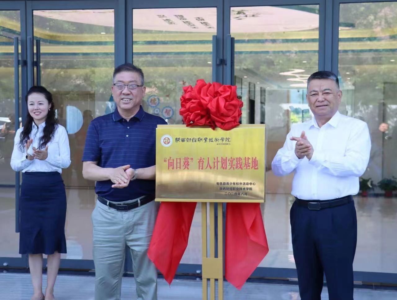 随后,高玉峰书记与旬邑县委书记王旭共同为“向日葵”育人计划实践基地揭牌。