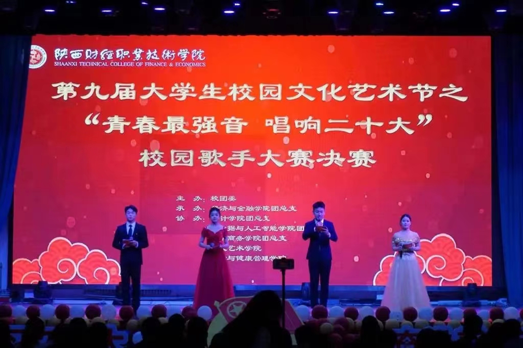 5月17日下午,由共青团陕西财经职业技术学院委员会主办,经济与金融学院团总支承办,各二级学院团总支协办的“学习二十大 永远跟党走 奋进新征程”第九届大学生校园文化艺术节活动之“青春最强音 唱响二十大”校园歌手大赛决赛在学校大礼堂成功举办。党委学生工作处处长乔晶策、学院团委书记张洁、会计学院党总支专职副书记李妙娟、数字商务学院党总支专职副书记王华、经济与金融学院党总支专职副书记张力出席活动。人文艺术学院音乐专业教师、及各二级学院辅导员代表担任此次比赛的评委。活动现场通过经金学院官方抖音账号“SCZY-经金学院的故事”全程直播。