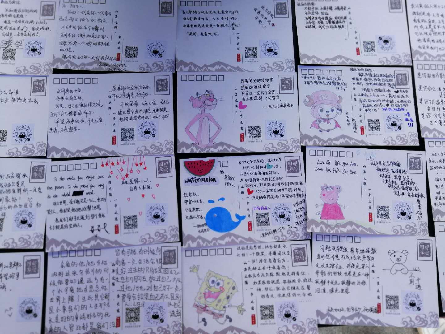 “四季邮局”是由北清人师联合全国高校团队,在百所高校之间开展的以推荐“最喜欢或最近读过的一本好书”为主题的明信片互寄活动。我院学子将校园里的风景制作成专属的明信片,并将校园内拍摄的小视频、音频、图片、及想说的话存放在“多媒体明信片”(专属二维码)中分享给自己的书友。我院志愿者将回收发放的全部明信片寄往其他各高校,同时收到其他不同高校学子的分享寄语。