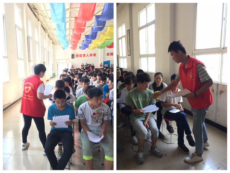 | 我院志愿者为在场学生发放学习资料 |