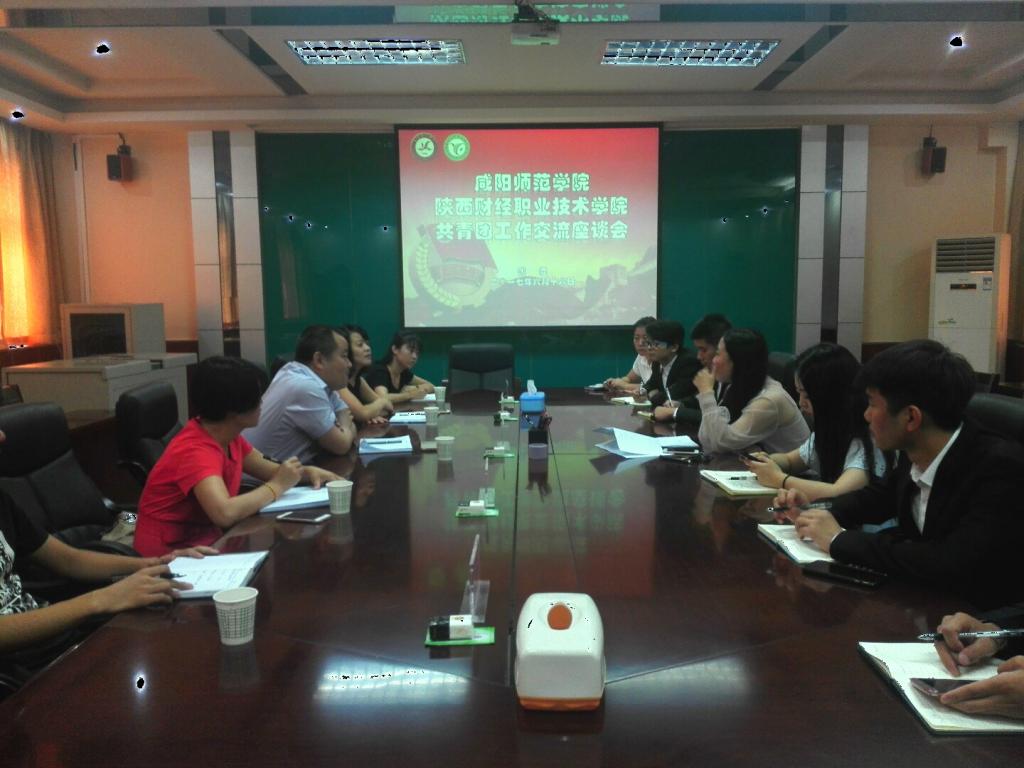 | 咸阳师范学院团委书记朱立选、团委副书记王倩、团委组织宣传部部长王建利与我院团委书记窦曼娟交流共青团工作 |