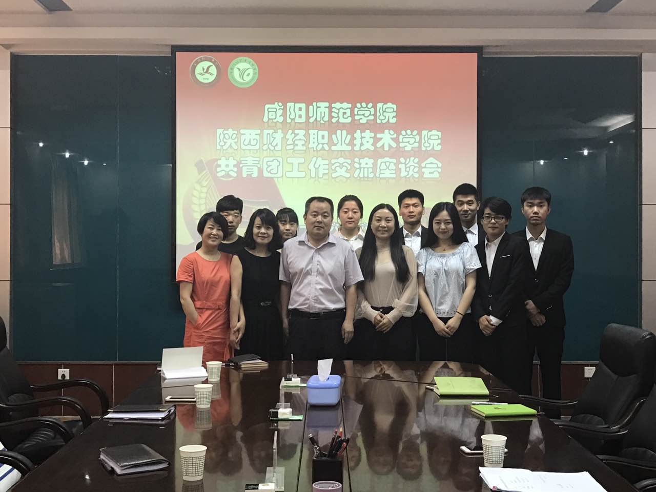 | 我院师生与咸阳师院团学组织干部合影留念 |