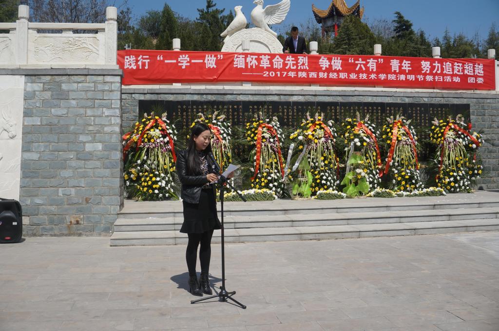 莽原默默,栢涛阵阵,在我们伟大的中华民族传统纪念日清明节来临之际,我院团委组织50余名优秀学生干部在咸阳烈士陵园举办“践行‘一学一做’缅怀革命先烈”清明节祭扫活动。仪式由会计二系团总支书记乔乐主持。