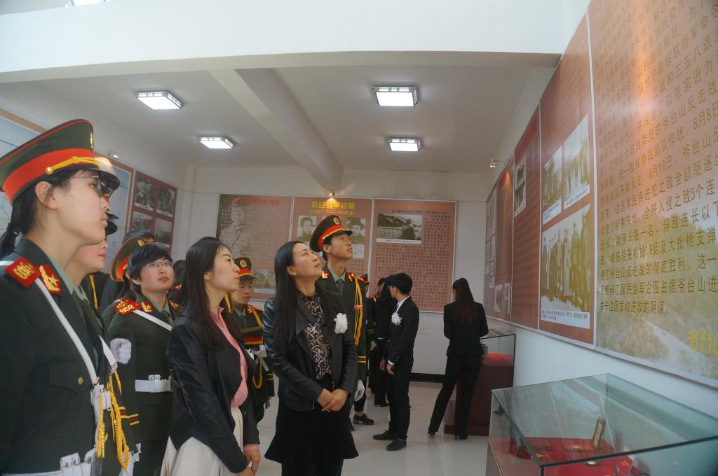窦曼娟向革命先烈敬献花篮,全体成员向革命先烈默哀。