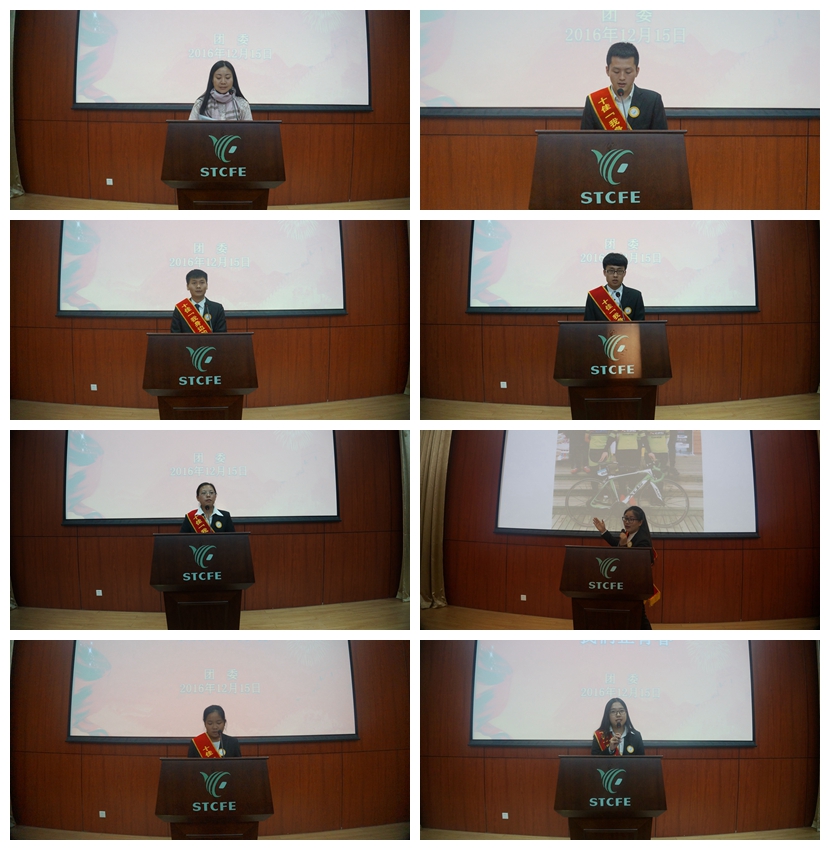 第二届“我身边的好青年”依次上台宣讲。“尊孝之星”李少波同学用一个故事短篇告诫每一位同学:“树欲静而风不止,子欲养而亲不待”的深刻道理。“励志之星”魏旭亮同学用自己打工创业的励志故事告诉同学们经历挫折和挑战困难就等于拥有了财富。“友善之星”师雯同学给大家讲述了在奶奶谦和友善的人生态度影响下,如何从一个内心自卑的小姑娘蜕变成今天勇敢自信、乐于助人的优秀女生。“学习之星”周彤同学分享了她从一个前途不被人看好的专科生到奋发图强通过自考拿到本科文凭,并在毕业之际被各大用人公司争抢的经历,她用自己的亲身经历告诉同学们要用知识改变命运。“自强之星”樊立晋同学,通过讲述她在高考之际如何在家庭突发种种意外的情况下战胜重重困难走出困境,勇敢承担起家庭重任的故事,她告诉同学们人生要懂得满足,懂得付出,懂得感恩。“奉献之星”樊成浩同学分享了他在学生干部这个岗位上的点滴小事,并用事实阐述了学生干部的经历对现在工作的帮助,并用三个发生在学校的小故事告诉同学们生活中不要斤斤计较,要学会奉献,总有一天会换来意外的汇报。“运动之星”翟静茹同学用自己在大学期间坚持骑行并取得骄人成绩的事实告诉同学们:在大学不要过着教室食堂宿舍三点一线的单调生活,应该多元化的培养自己的兴趣爱好,走出宿舍让自己的大学生活更加精彩。每一位宣讲人都能从自己的亲身经历出发向同学们阐述了深刻的人生道理,内容真实感人,让现场所有师生无不动容。