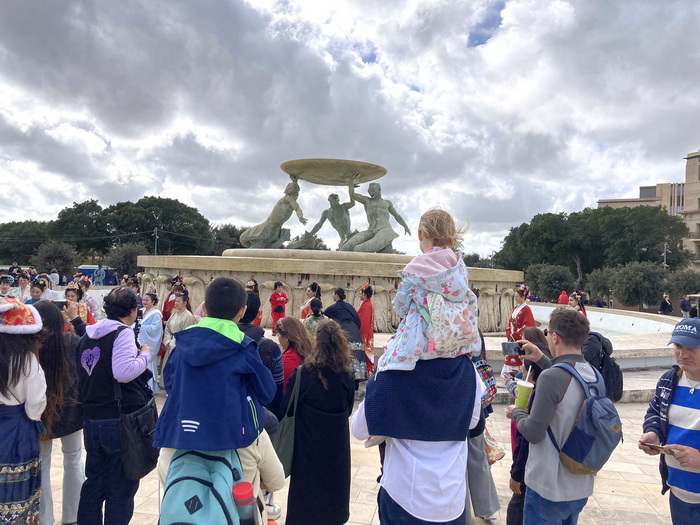 这支由来自马耳他、中国、波兰、乌克兰和意大利等多个国家汉服爱好者组成的模特队,踏着悦耳动听的中国民乐,从马耳他中国文化中心出发,款款而行约两公里,途经瓦莱塔最繁华的共和国大街及总统府门前的圣乔治广场、新国会大厦和“三海神”喷泉广场等游客云集的景点。模特们身上美轮美奂的汉服在精致优雅的妆发、摇曳生姿的头饰及轻盈雅致的团扇映衬下,尽显古典端庄灵动之风韵,令沿途民众惊艳不已,纷纷驻足观看,拍照摄影留念。