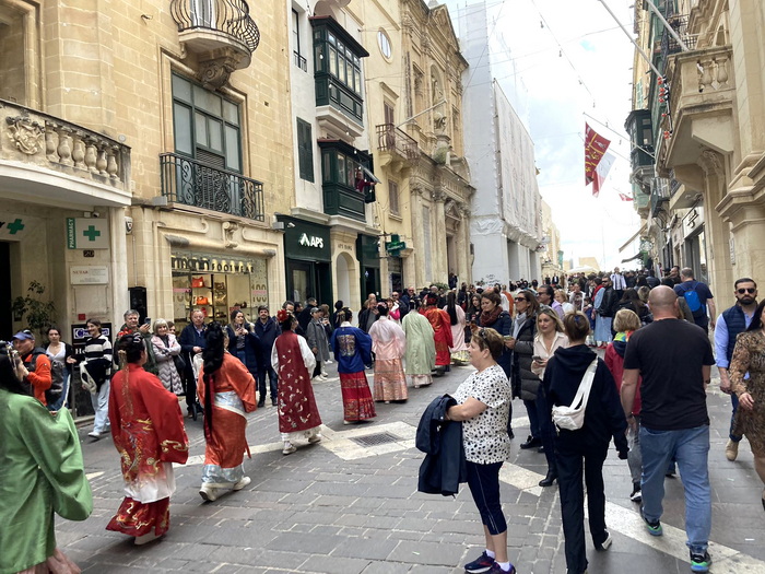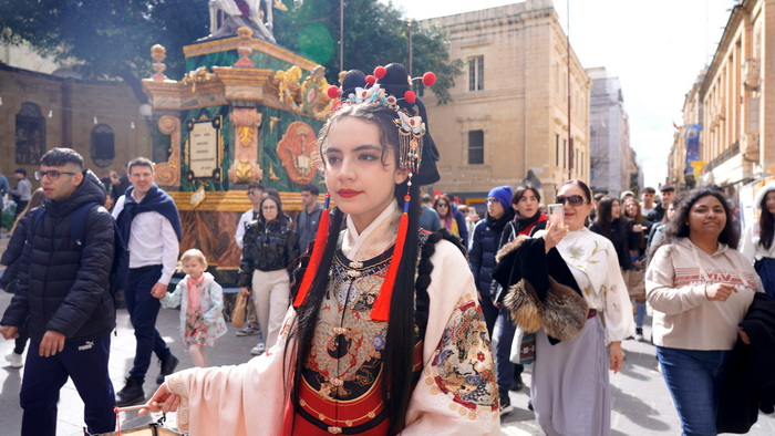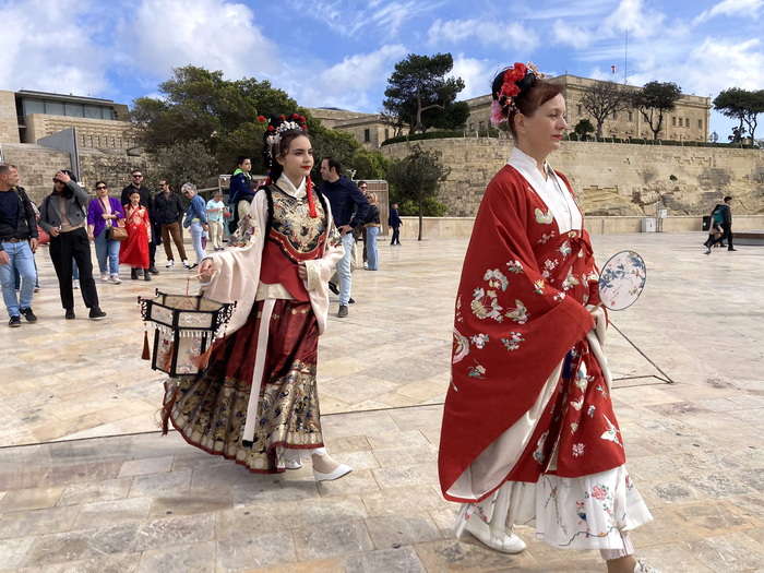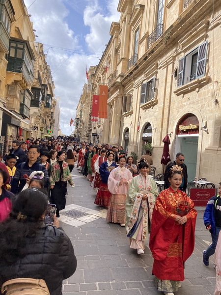 2月17日,马耳他首都瓦莱塔和风轻拂,在蓝天白云的映衬下,春意盎然。马耳他中国文化中心组织的23名志愿者模特身着汉服,以世界文化遗产、欧洲名城古都瓦莱塔为舞台,以东方服饰之美,向沿途逾千民众与国际游客展示中华文化魅力,共庆中国龙年的到来,共享中国春节的喜乐祥和。